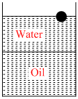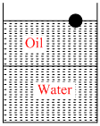 Oil is the least dense of them so it should settle at the top with water at the base. Now the ball is denser than oil but less denser than water. So, it will sink through oil but will not sink in water. So it will stay at the oil and water interface.