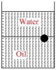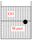 A ball is made of a material of density ρ where ρoil < ρ < ρwater with ρoil and ρwater representing the densities of oil and water, respectively. The oil and water are immiscible. If the above ball is in equilibrium in a mixture of this oil and water, which of the following pictures represents its equilibrium position ?