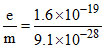 me = 9.1 × 10-31 kg = 9.1 × 10-28 g.