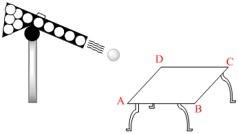 A gun which fires small balls of mass 20 gm is firing 20 balls per second on the smooth horizontal table surface ABCD. if the collision perfectly elastic and balls are striking at the centre of table with a speed 5 m/s at an angle of 60o with the vertical just before collision, then force exerted by one the leg on ground is (assume total weight of the table is 0.2 kg and g = 10 m/s2) :A gun which fires small balls of mass 20 gm is firing 20 balls per second on the smooth horizontal table surface ABCD. if the collision perfectly elastic and balls are striking at the centre of table with a speed 5 m/s at an angle of 60o with the vertical just before collision, then force exerted by one the leg on ground is (assume total weight of the table is 0.2 kg and g = 10 m/s2) :