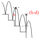 A ball is bouncing down a set of stairs. The coefficient of restitution is e. The height of each step is d and the ball bounces one step at each bounce. After each the ball rebounds to a height h above the next lower step. Neglect width of each step in comparison to h and assume the impacts to be effectively head on. Which of the flowing relation is correct ?