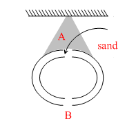 A.If B is closed and sand is poured from A. centre of mass first rise and then falls