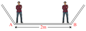 Two person A and B of weight 80 kg and 50 kg respectively are standing ends of a boat of mass 70 kg and length 2m at rest. When they interchange their positions then displacement of the centre of mass of the boat will be :