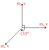 A particle of mass 4m which is at rest explodes into four equal fragments. All 4 fragment s scattered in the same horizontal plane. Three fragments are found to move with velocity v each as in the fig. The total energy released in the process of explosion
