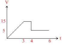 The figure shows the velocity as a a function of the time for an object with mass 10 kg being pushed along a frictionless surface by external force. At t = 3s. the force stop pushing and the object freely. It then collides head on and sticks to another object of mass 25 kg.