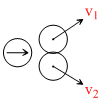 m × 1 = mv1 + (2mv2 × cos 60o)