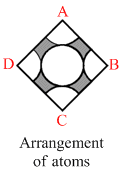 A plane ABCD obtained by joining the mid points of the edges on one of its identical faces had atoms arranged as shown. Let p be the packing fraction.Choose the correct option: