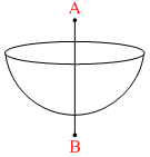 The diagram show a uniformly charged hemisphere of radius R. It has volume charge density . If the3 electric field at a point 2R distance above its centre is E then what is the electric field at the point which is 2R below its centre ?