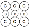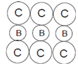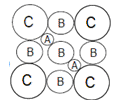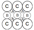 In a hypothetical solid C atoms form CCP lattice with A atoms occupying all the Tetrahedral Voids and B atoms occupying all the octahedral voids.A and B atoms are of the appropriate size such that there is no distortion in the CCP lattice.Now if a plane is cut(as shown) then the cross section would like.