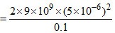 Two infinite liner charges are placed parallel to each other at a distance 0.1 m from each other. If the linear charge density on each is 5 /m, then the force acting on a unit length of each linear charge will be: