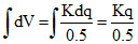 A non - conducting ring of radius 0.5 m carries a total charge 1.11 × 10-10 C distributed non- uniformly on its circumference producing an electric field E every where in space. The value of the integral