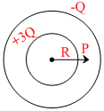 A solid metallic sphere has a charge + 3Q. Concentric with this sphere is a conducting spherical shell having charge - Q. The radius of the sphere is a and that of the spherical shell is b (b > a). What is the electric field at a distance R (a < R < b) from the centre ?