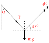 T sin α = qE cos 45o and Tcos α + qE sin 45o = mg