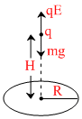 A charged particle having some mass is resting in equilibrium at a height H above the centre of a uniformly charged non-conducting horizontal of radius R. The force of gravity acts downwards.; The equilibrium of the particle will be stable :