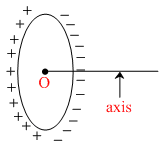 The figure show a nonconducting ring which has positive and negative charge non uniformly distributed on it such that the total charge is zero. Which of the following statements is true ?