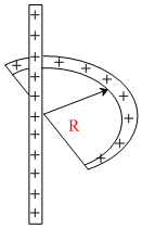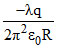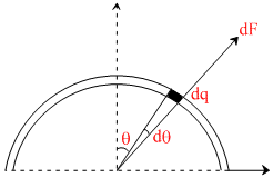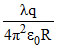 Find the force experienced by the semicircular rod charged with a charge q, placed as shown in figure. Radius of the wire is R and the infinite line of charge with linear density λ is passing through its centre and perpendicular to the plane of rod.