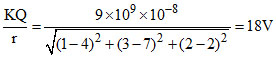 An electric charge 10-8 C is placed at the point (4m, 7m, 2m). At the point (1m, 3m, 2m), the electric :