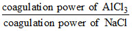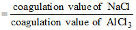 Coagulation value of the electrolytes AlCl3 and NaCl for As2S3 sol are 0.093 and 52 repectively. How many times AlCl3 has greater coagulating power than NaCl.