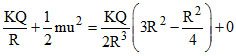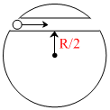 A unit positive point charge of mass m is projected with a velocity v inside the tunnel as shown. The tunnel has been made inside a uniformly charged non conducting sphere. The minimum velocity with which the point charge should be projected such that it can it reach the opposite end of the tunnel, is equal to :