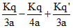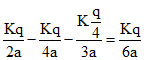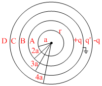 There are four concentric shells A, B, C and D of radii a, 2a 3a and 4a respectively. Shells B and D are given charges +q and -q respectively. Shell C is now earthed. The potential difference VA - VC is :