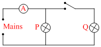 How will the reading in the ammeter A of figure be affected if another identical bulb Q is connected is parallel to P as shown. The voltage in the mains in maintained at a constant value.