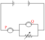 Consider two extreme cases. (i) When the resistance of the rheostat is zero, the through Q is zero since Q is short-circuited. The circuit is then essentially a battery in series with lamp P. (ii) lamp P. (ii) when the resistance of the rheostat is very large, almost no current flows through it. So, the currents thought P and Q are almost equal. The circuit is essentially a battery in series with lamps P and Q.