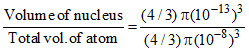 The fraction of volume occupied by the nucleus with respect to the total volume of an atom is
