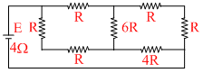 A battery of internal resistance 4W is connected to the network of resistance as shown. In the order that the maximum power can be delivered to the network, the value of R in W should be: -