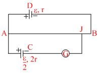 and its internal resistance is 2r. The galvanometer G will show no deflection when the length AJ is