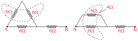 A wire has resistance of 24Ω is bent in the following shape. The effective resistance between A and B is -