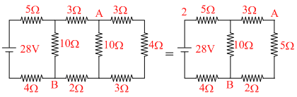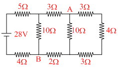 Req = 14Ω ⇒ I = 2A; VAB = iR = 7 volt