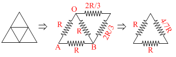 In the diagram resistance between any two junctions is E. Equivalent resistance across terminals A and V is