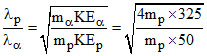 An α-particle has initial kinetic energy of 25 eV and it is accelerated through the potential difference of 150 volt. If a proton has initial kinetic energy of 25 eV and it is accelerated through the potential difference of 25 volt then find the approximate ratio of the final wavelengths associated with the proton and the α-particle.