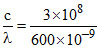 A sodium street light gives off yellow light that has a wavelength of 600 nm. Then