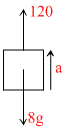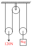 If the string is pulled down with a force of 120 N as shown in the figure, then the acceleration of 8 kg block would be