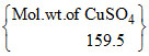 A 20.0 mL sample of CuSO4 solution was evaporated to dryness, leaving 0.967 g of residue. What was the molarity of the original solution ? (Cu = 63.5)
