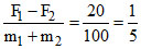 If = 40 N & F2 = 60 N then a =