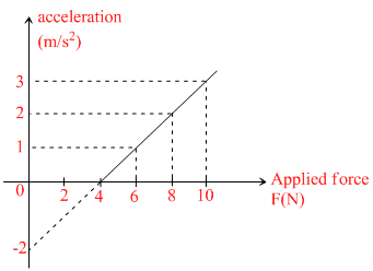 A block of unknown mass is at rest on a rough horizontal surface. A force F is applied to the block. the graph in the figure show the acceleration of the block w.r.t. the applied force.