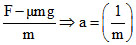⇒ m = 2 kg and y-intercept ; - μg = - 2 ⇒ μ = 0.2