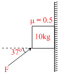 F and to start upward motion F sin 37o = 10g + μN