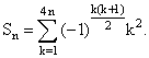 Sn = -12 - 22 + 32 + 42 - 52 - 62 + 72 + 82 .........