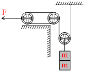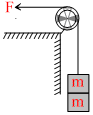 A man thanks about 4 arrangement as show to raise two small bricks each having mass m. Which of the arrangement would take minimum time ?