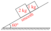 In the figure show if friction coefficient of block 1kg and 2kg with inclined plane is μ1 = 0.5 and μ2 = 0.4 respectively, then
