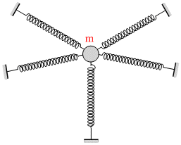 A sphere of mass m is kept in equilibrium with the help of several springs as shown in the figure. Measurement show that one of the spring applies a force