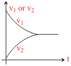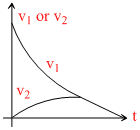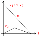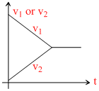 here v1 - t graph is a straight line of negative slope and v2 - t graph is also a string of + ve slope.