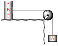 There block A, B and C of equal m are placed one over the other on a smooth horizontal ground shown in figure. Coefficient of friction between any two block of A, B and C is