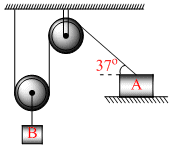 In the figure show block B moves down with a velocity 10 m/s. The velocity of A in the position shown is