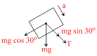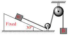 Two block A and B of equal mass m are connected through a mass less string and arranged as show in figure. Friction is absent everywhere. When the system is released from rest.
