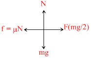 A box of mass m is initially at rest on a horizontal force of mg / 2 is applied to the box directed to the right. the coefficient of friction of the surface changes with the distance pushed as μ = μ0x where x is the distance from the initial location. For what distance is the box pushed initial it comes to rest again ?