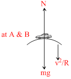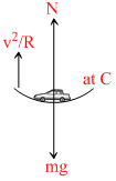 At A & B, N = mg - mv2/R & at C, N = mg + mv2 /R ∴ fmax μsN → maximum for C